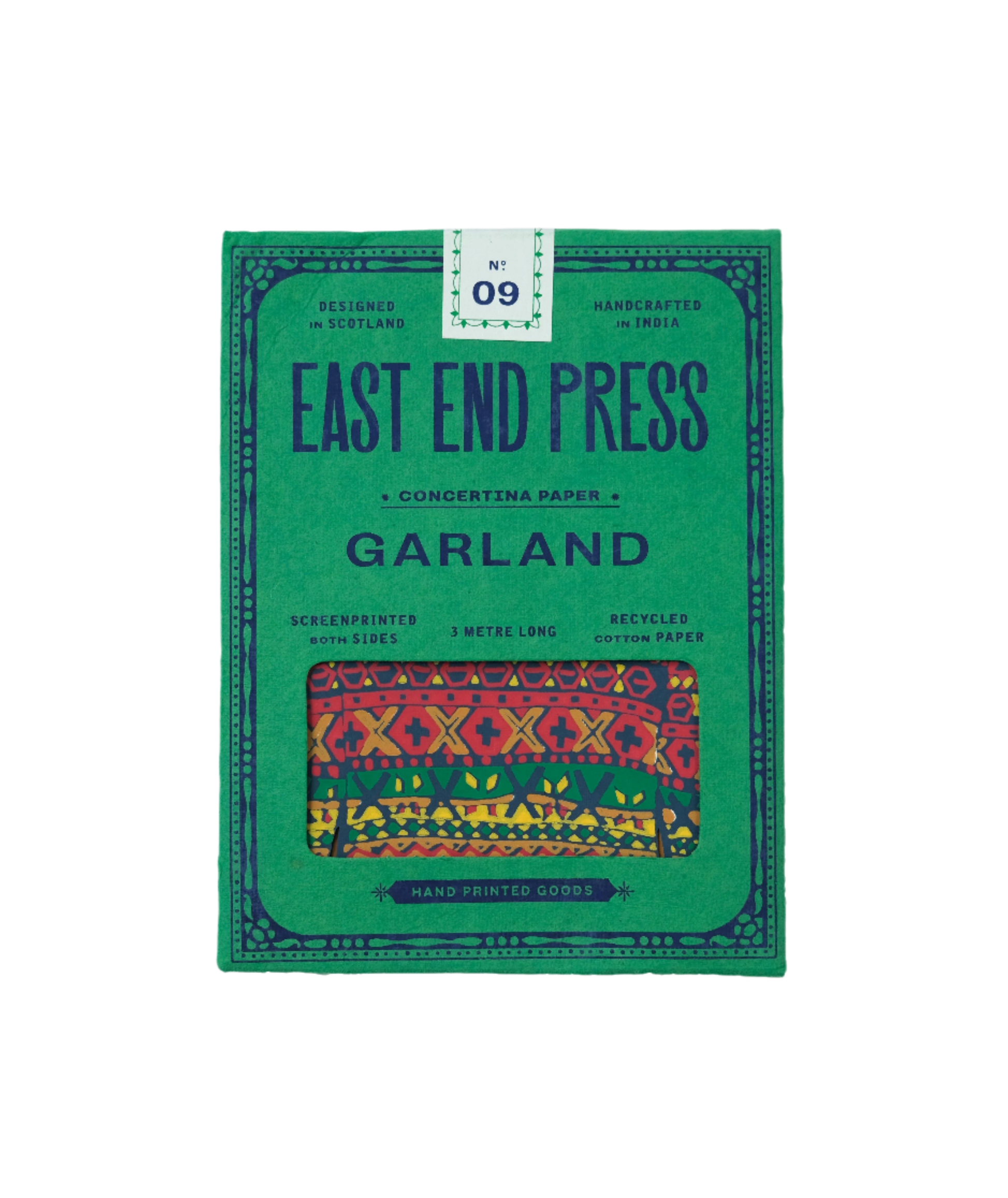 Christmas sweaters create this concertina fold out garland, which would be a great addition to a Christmas table or festive mantelpiece. This garland is hand printed on both sides, and made from thick handmade paper created from entirely recycled content.