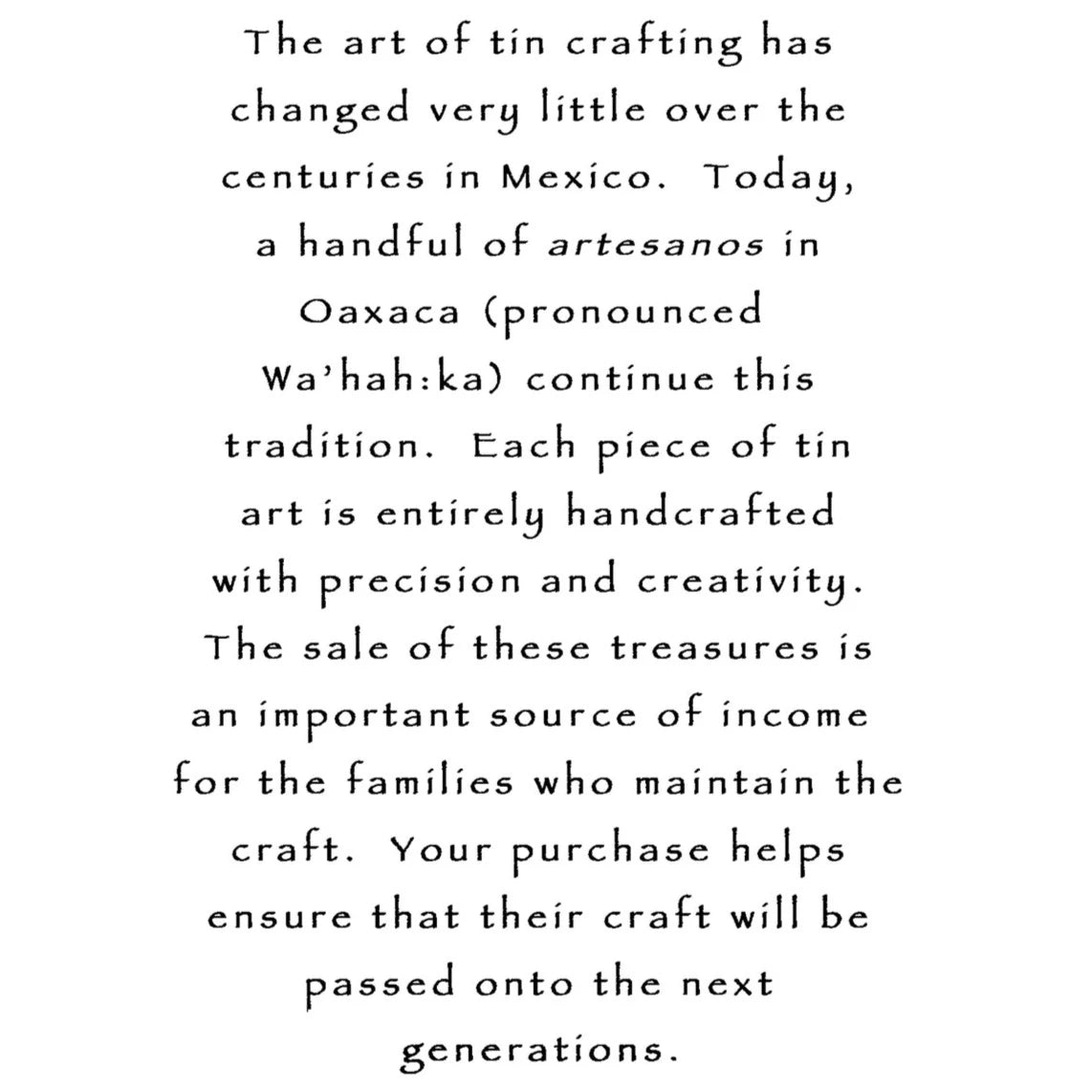 Large tin heart milagro, both handcrafted and painted in Mexico. Perfect for decorating the home or gifting to a loved one.