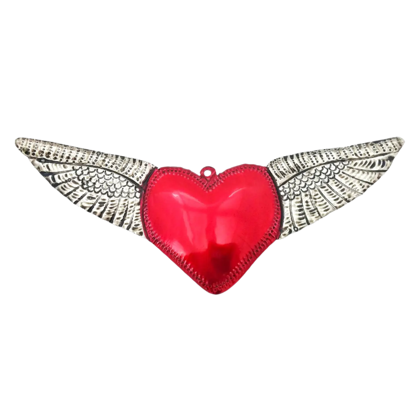 Mexican Tin Ex Voto Milagros Hanging Decoration - Heart in Flight (Large)