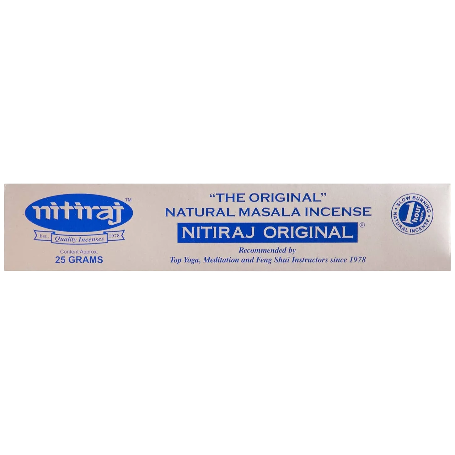 Recognised for innate, unrivalled qualities, the aroma of Nitiraj Original is a favourite for transcending barriers to inner peace and tranquillity. Selected by practitioners of meditative therapies for almost 40 years, each slow-burning stick burns for approximately 1 hour with a pure, soul embracing scent. Yoga, meditation, feng shui, spa treatments, home relaxation; this natural aid is the premium accompaniment for a gentle journey to well-being and calm. Use caution when burning incense, never touch when lit, it will burn.