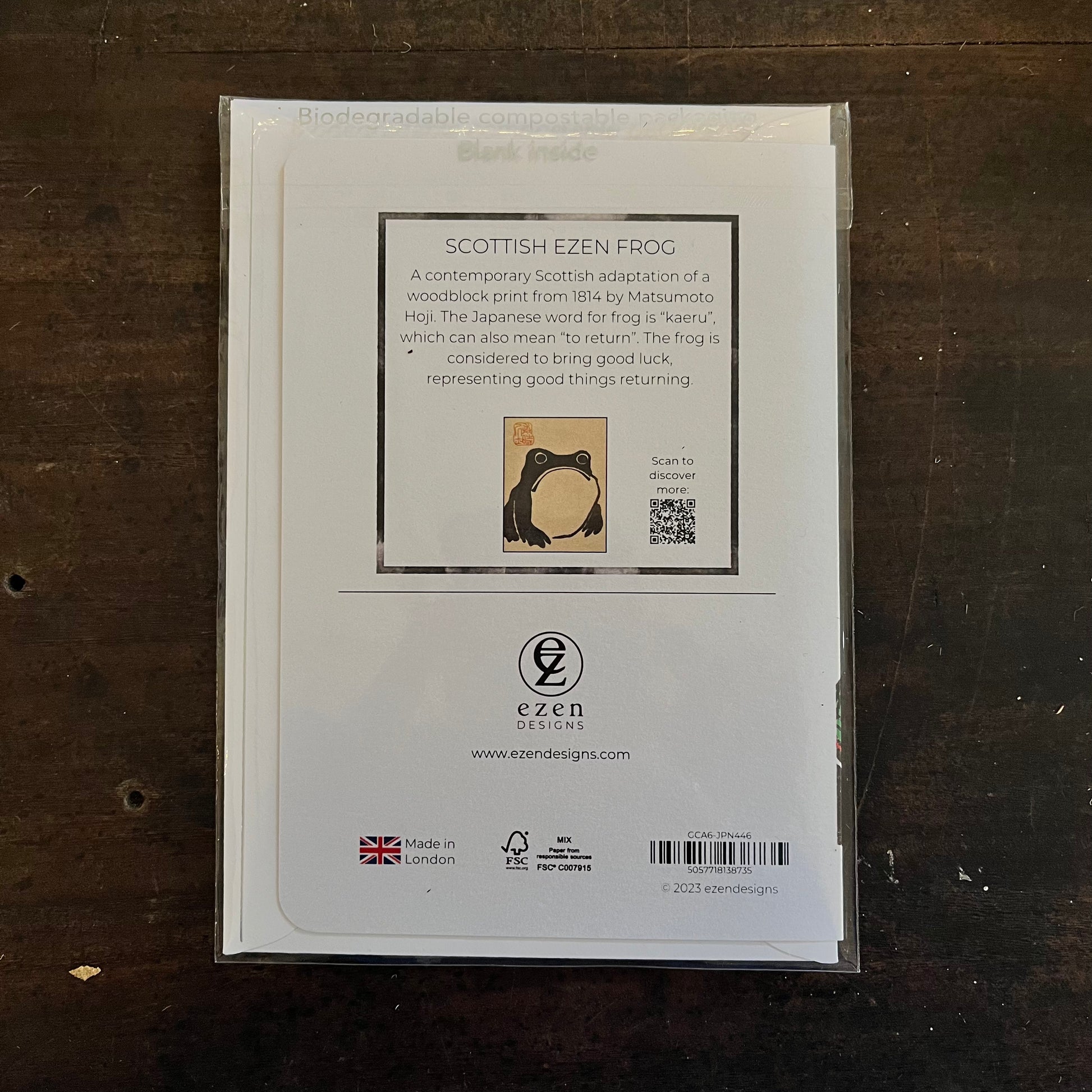 A contemporary Scottish adaptation of a woodblock print from 1814 by Matsumoto Hoji. The Japanese word for frog is “kaeru”, which can also mean “to return”. The frog is considered to bring good luck, representing good things returning.