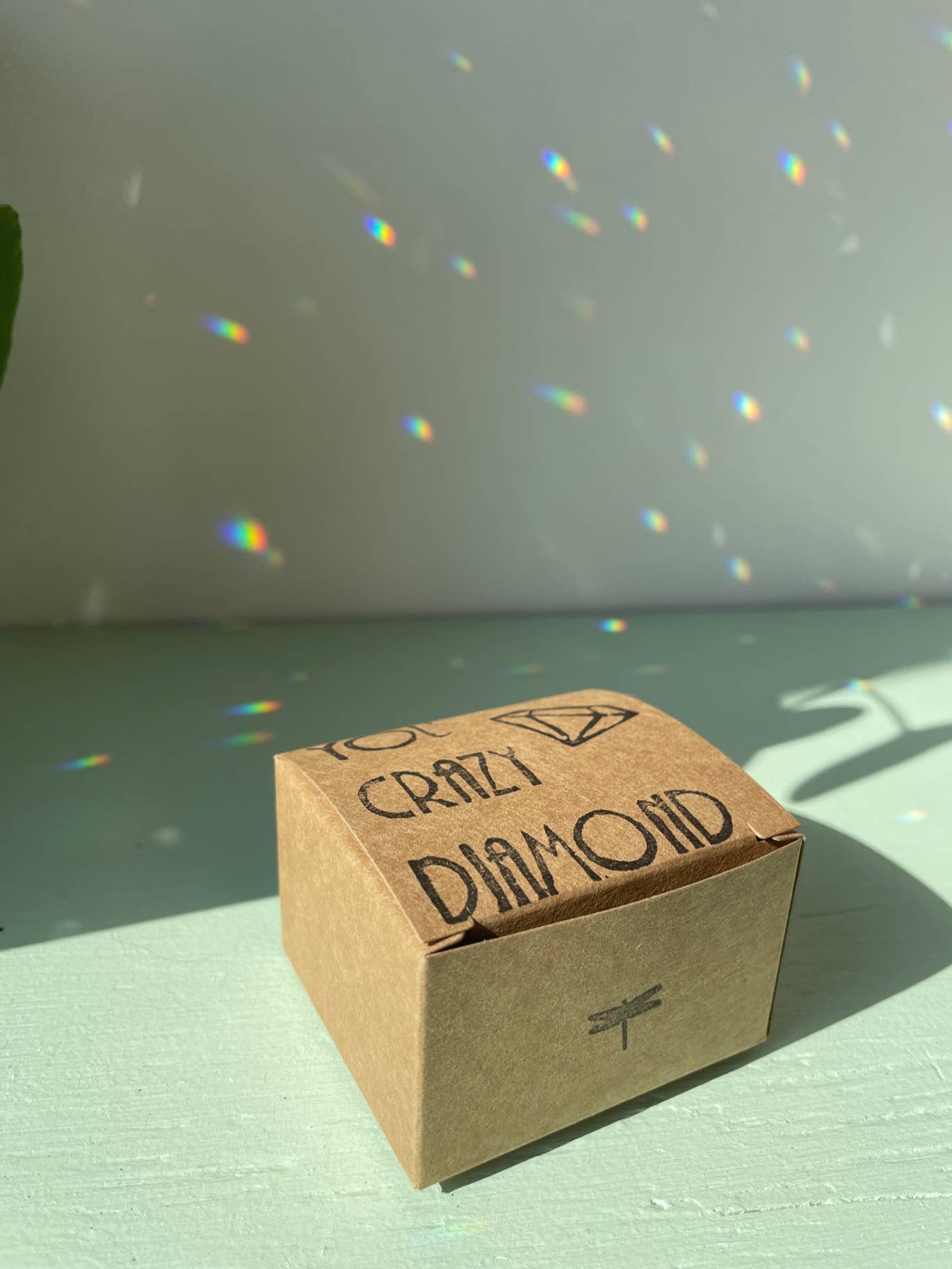 The Suncatchers - wrapped in tissue paper - are delivered in a decorative box with a hand-stamped print: You Crazy Diamond. The Suncatchers are all made individually by hand in Hamburg.