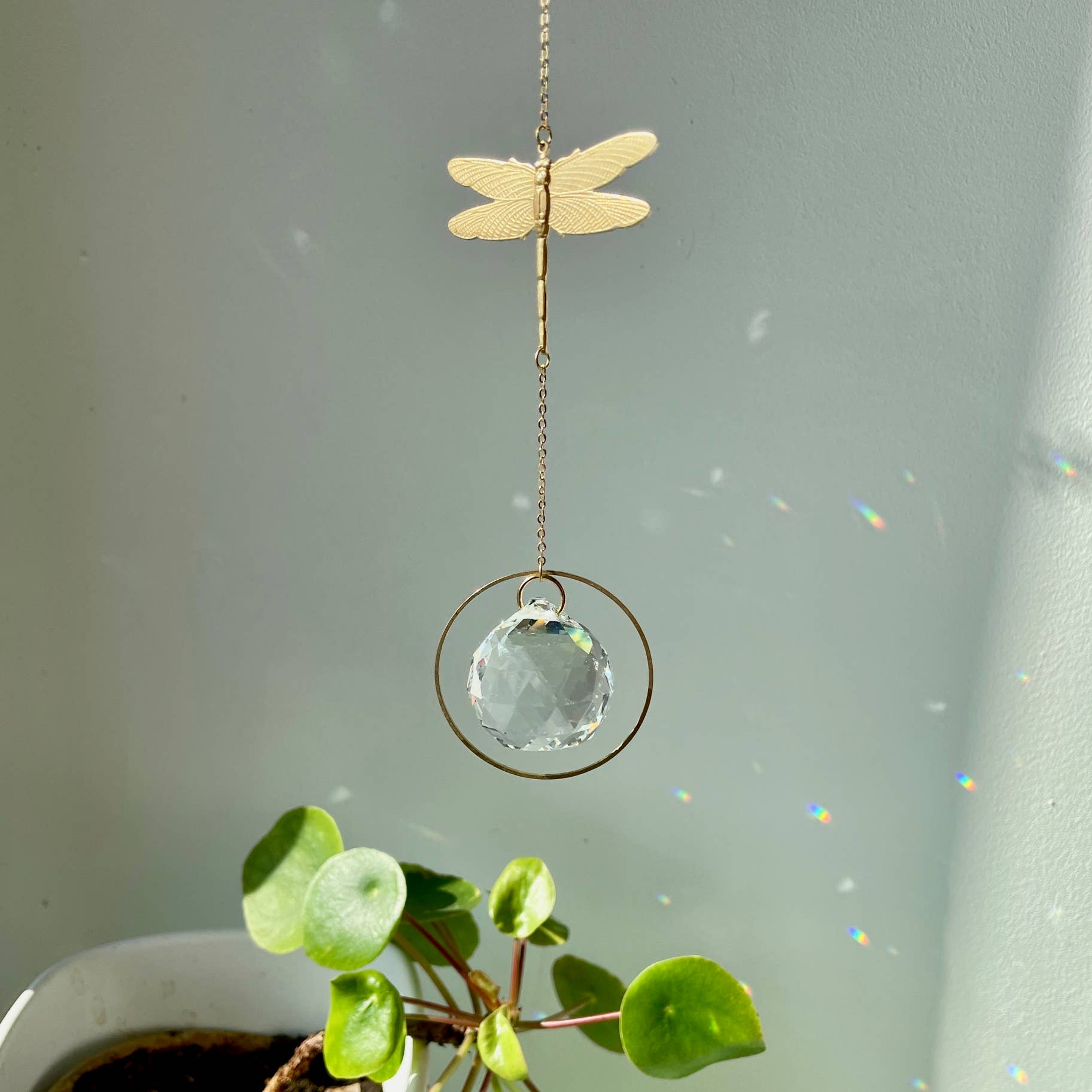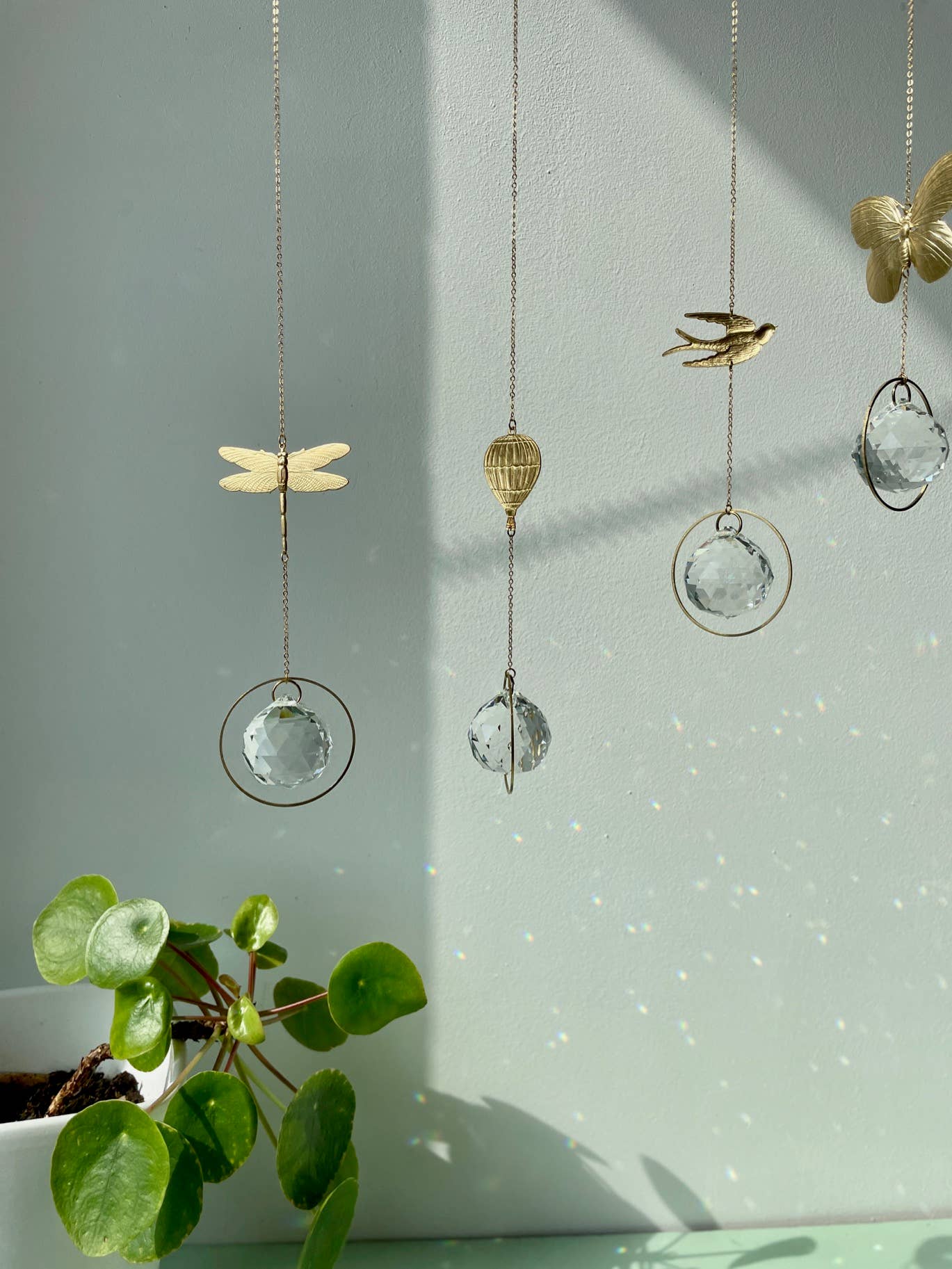 Suncatchers magically distribute the sun in the room. These suncatchers feature a gold-colored brass chain and a prism, framed in interlocking circles. They are also a wonderful eye-catcher when the sun is not shining. The window crystal is 3 cm in diameter and the chain is about 50 cm long. A simple hook is attached for hanging, so you can also make a loop by placing the hook further down the chain.